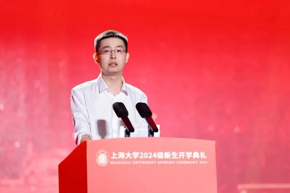 王兴兴在上海大学2024级新生开学典礼上发言。