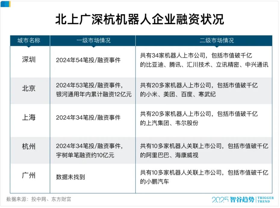 如果想争夺“机器人第一城”,还得比拼融资能力,要看一级市场和二级市场的吸金能力。